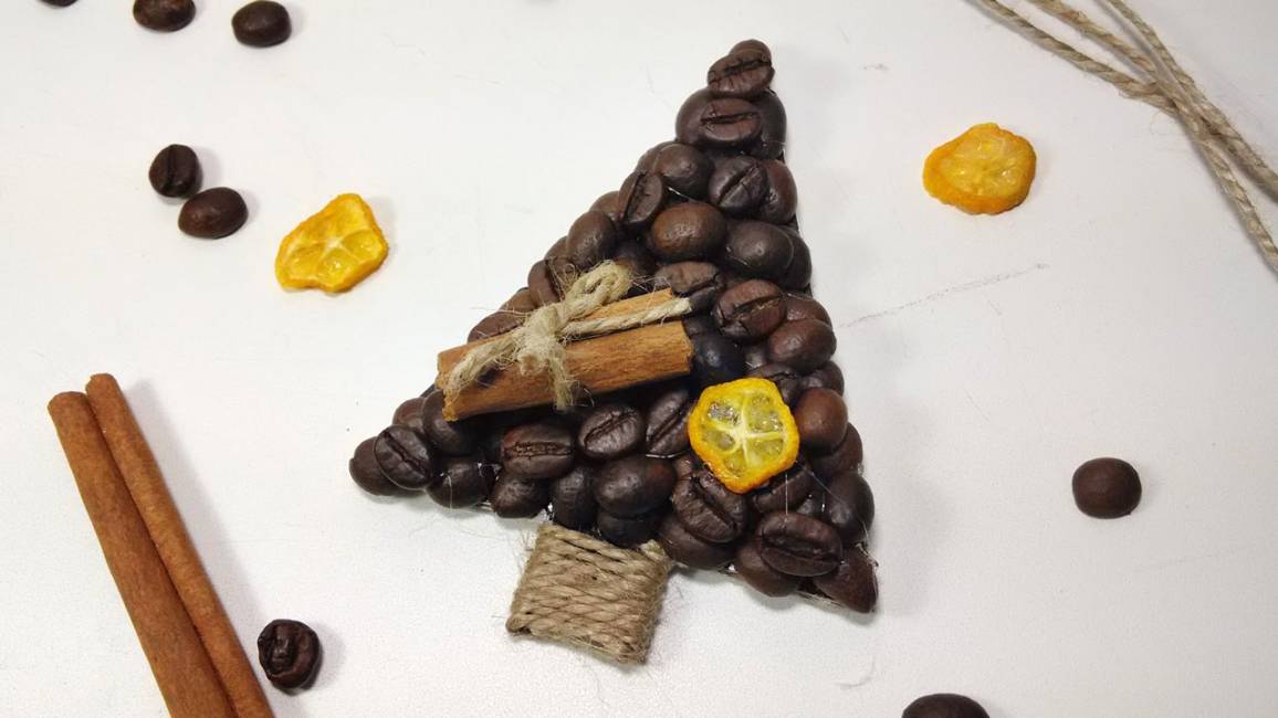 Большой плюс такой елочки — она компактна. А также она будет издавать слабый запах кофе, особенно в жаркие дни. Её можно повесить в машине, в маленькой комнате. Чтобы сделать это было удобнее, можно снабдить фигурку шнурком или приклеить к картону с обратной стороны магнитик.