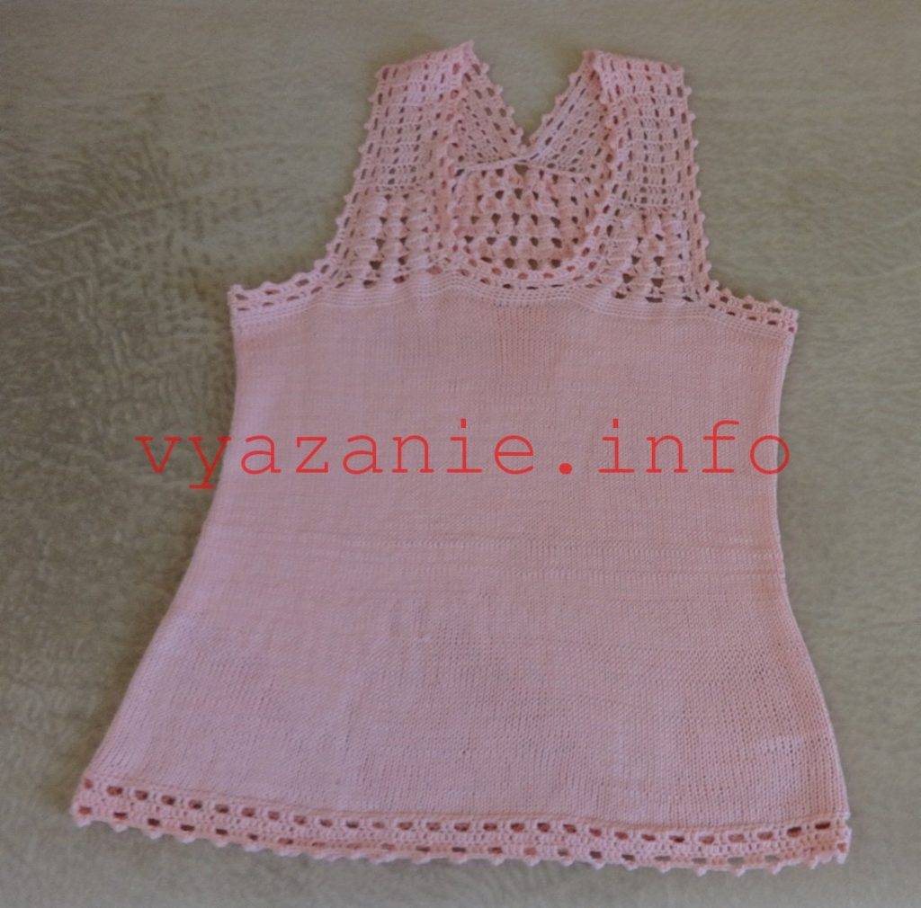 Предлагаем посмотреть подробное описание вязки летней майки на фото.