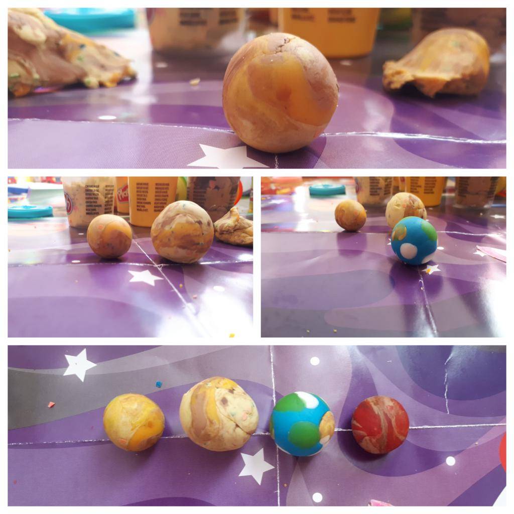 Самую примитивную модель солнечной системы можно изготовить из пластилина или соленого теста, раскрашенного в нужные цвета. Она подойдет для самых маленьких малышей.
