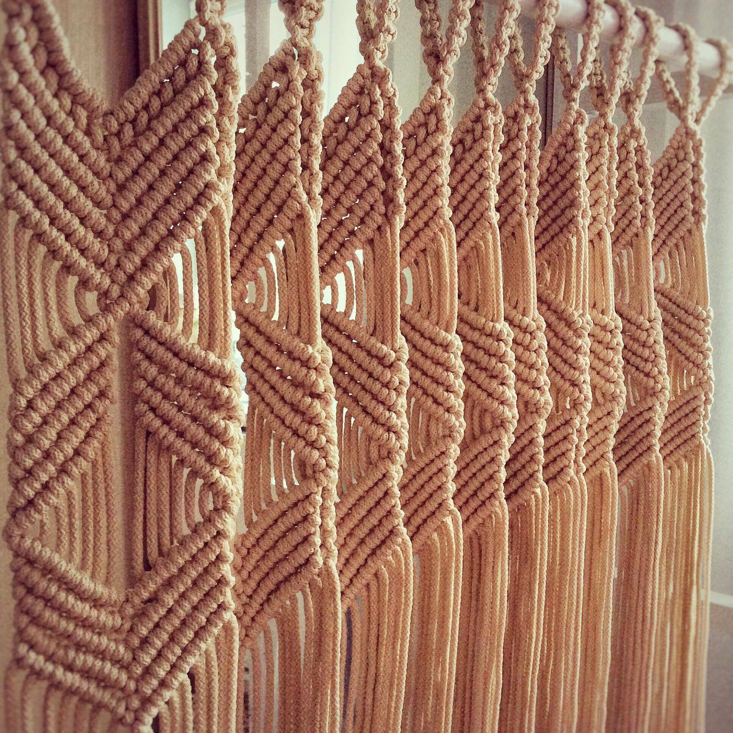 В технике макраме можно сплести огромное количество оригинальных предметов интерьера, одним из которых является штора.