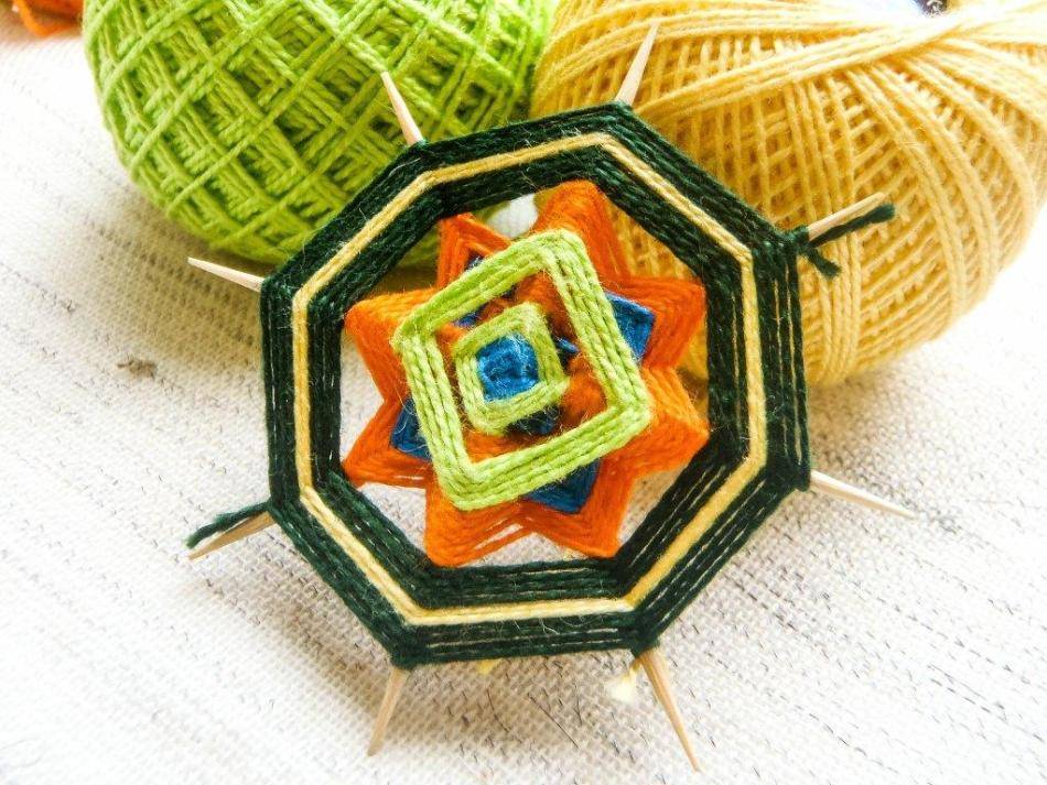 Существует много интересных и простых схем по созданию мандалы. Пряжа, как основной материал изделия, выбрана не случайно. Какой бы толщины ни были нитки, они поддаются любой реализации. Часто бывает так, что, задумывая одну геометрическую фигуру, вы получаете совершенно другую.