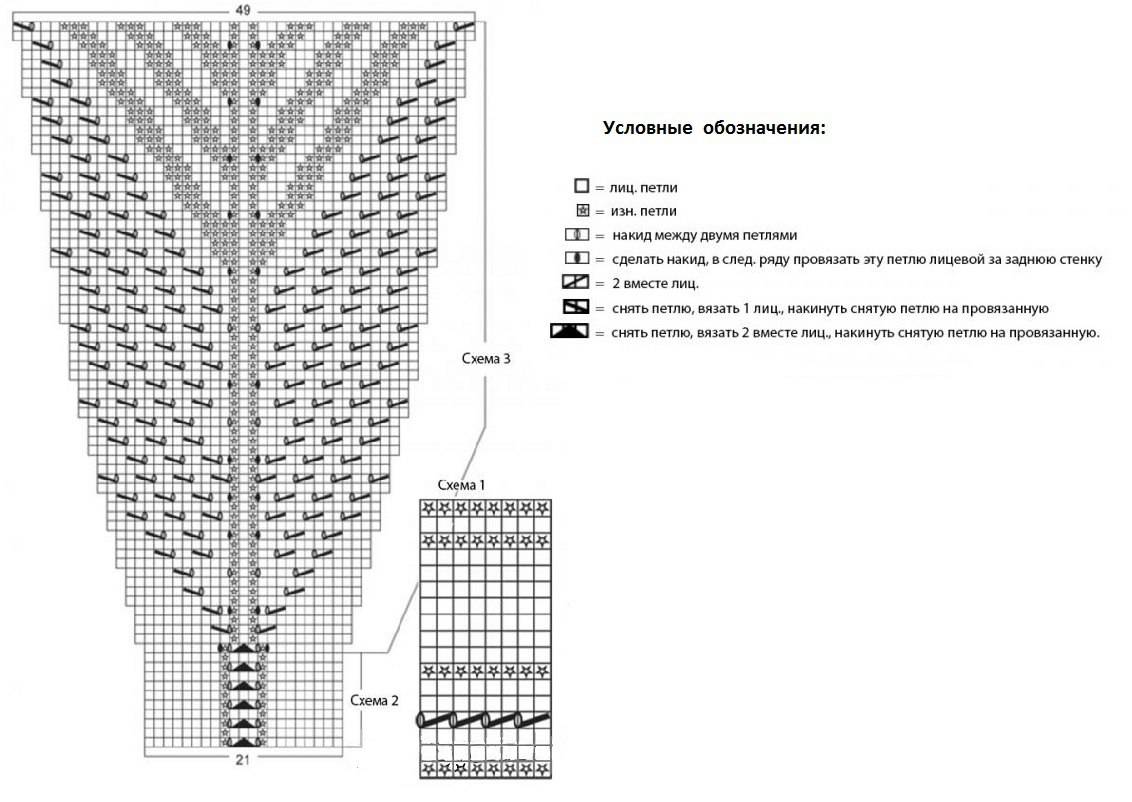 Схема вязания ажурной манишки спицами