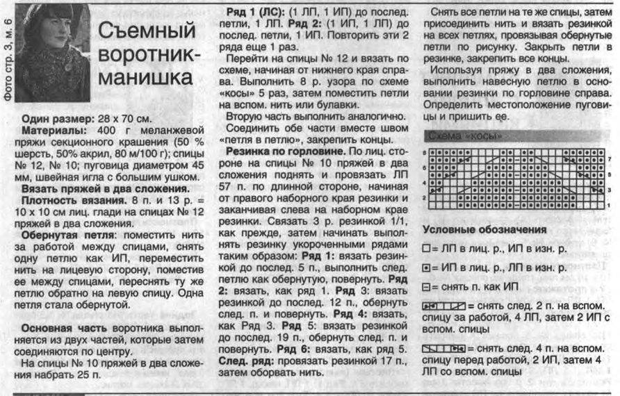Красивая манишка-шарф 2 спицами для начинающих: схема, описание, фото