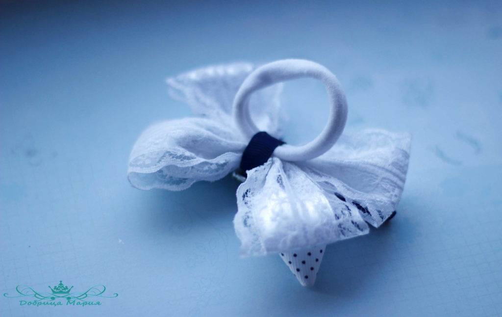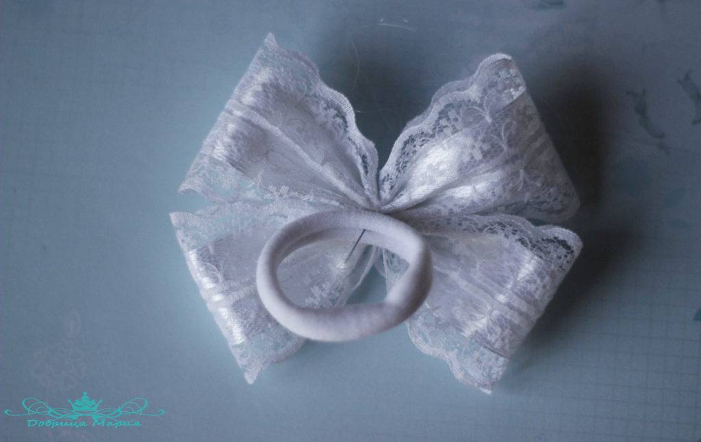 - Место сшития спрятать под узенькой ленточкой. Этой же ленточкой можно и прикрепить бантик к резинке.