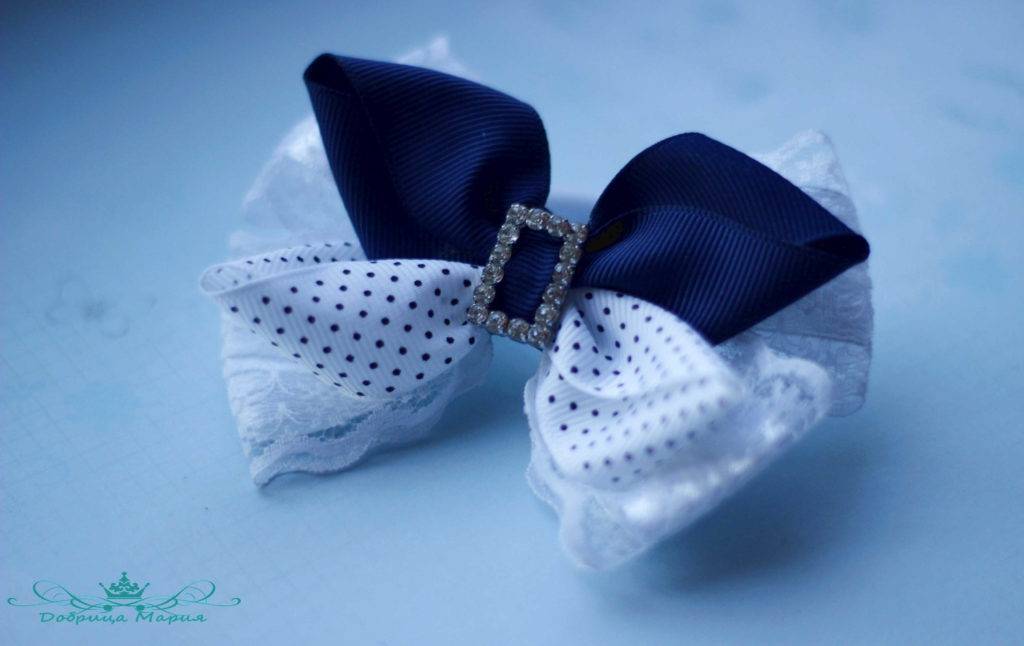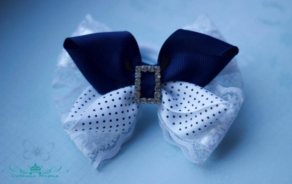 Вариант в школьном стиле. Сделайте такое чудо для своей ученицы, и она будет неповторима.Если сделать бант из бархатной ленты, то есть синюю атласную заменить на бархатную, вы получите не менее интересный вариант!