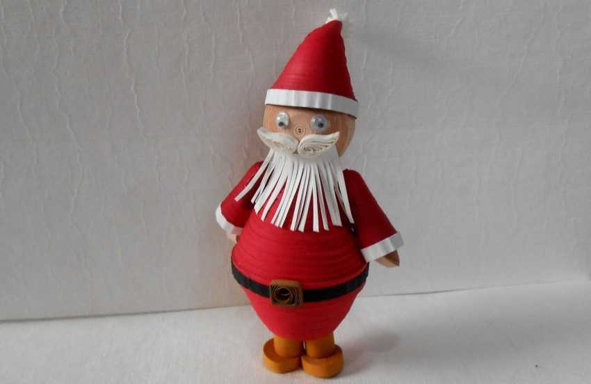 Интересно и оригинально будет смотреться поделка Деда Мороза, изготовленная в технике квиллинг.