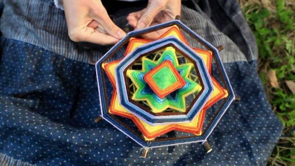 Обратите внимание, кроме того, что Вам придется внимательно следить за плетением, чтобы случайно не пропустить палочку, Вам также необходимо следить за тем, чтобы углы между палочками были одинаковыми. Для начинающего это может показаться чрезвычайно тяжелым, но со временем Вы привыкнете и будете создавать потрясающие мандалы