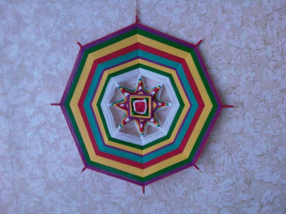 Вот наша мандала и готова к охране дома! Считается, что если Вы при плетении мандалы что-то загадаете, то Ваше желание сбудется. Но существует одно условие: Вам нужно верить в магические свойства мандалы!