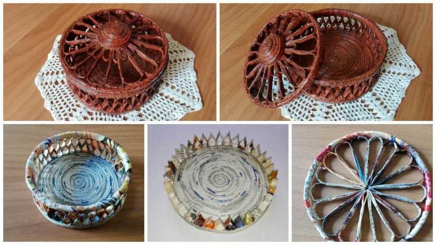 Корзинки из газетных трубочек имеют различную форму. Даже начинающим можно сплести своими руками разнообразные конфигурации.