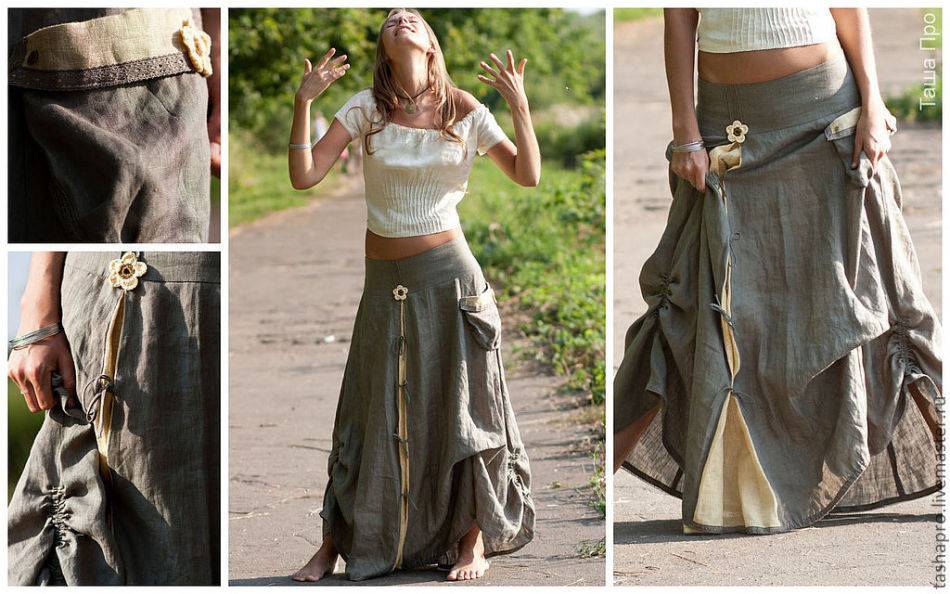 Некоторые ошибочно думают, что юбка в этом стиле напоминает цыганскую. Широкая, длинная, цветастая, обязательно с повязанным на талии платком. Но выглядят эти модели несколько иначе: