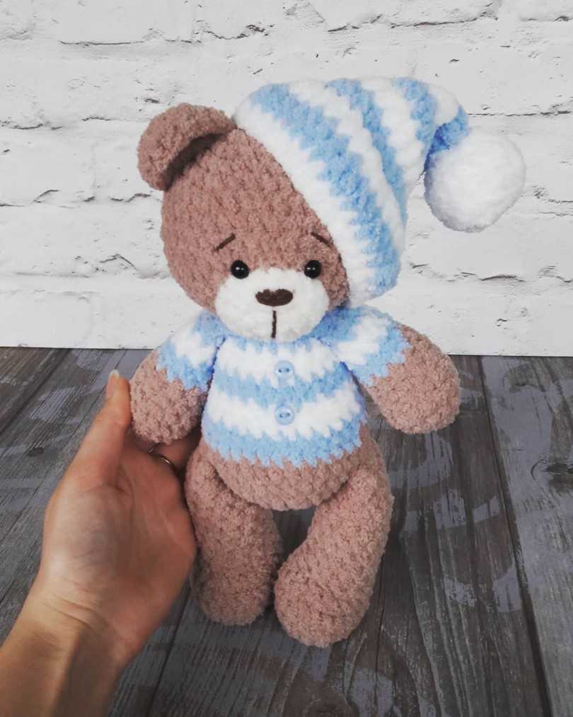 Мишка Тедди в шапочке Игрушка вяжется быстро и просто. Мишки Тедди, вязаные крючком, могут быть большими или крошечными, пушистыми или гладкими, плюшевыми или велюровыми, но обязательно с выразительными бровями.