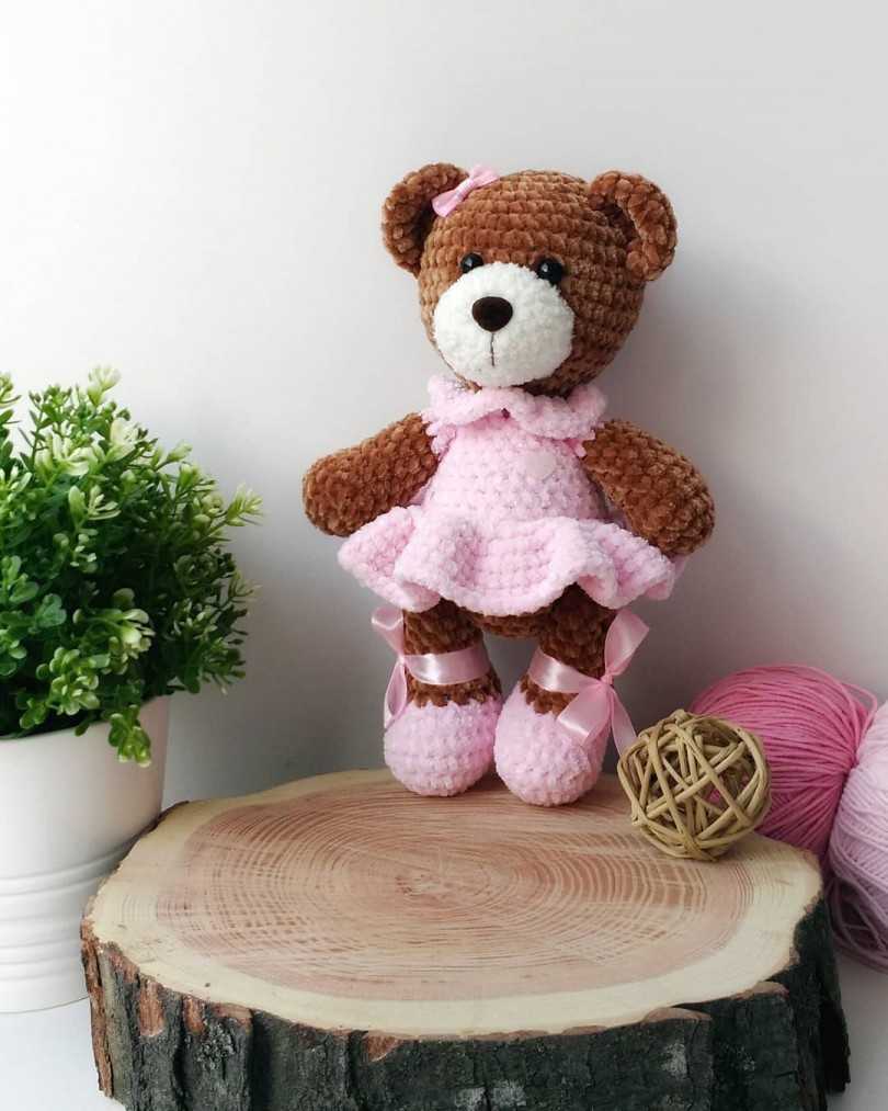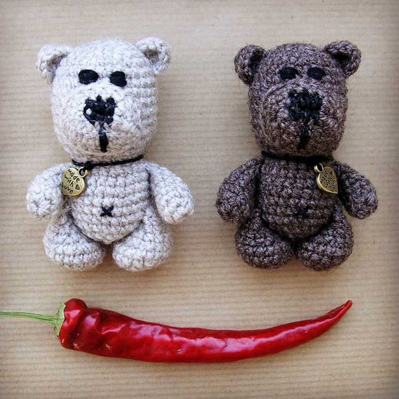 Вязаных мишек чаще всего выполняют в технике амигуруми.
