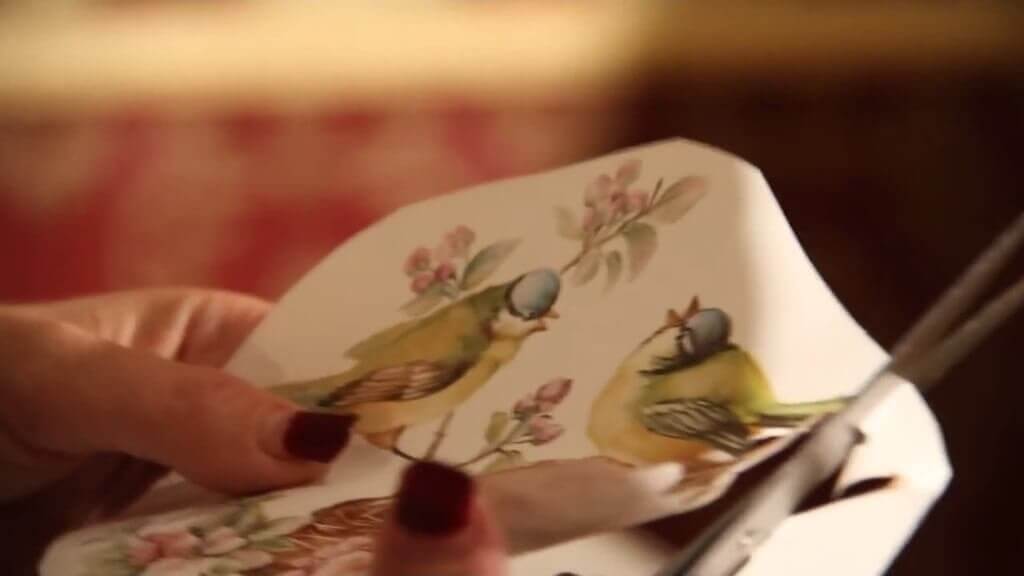 - Пока высыхает краска, подготавливаем картинки для декупажа. Для лучшего сцепления картинок с поверхностями, их внутреннюю сторону рекомендуется снять скотчем. Все картинки вырезаются строго по контурам. Чтобы определить необходимое количество картинок, необходимо предварительно разложить их на обрабатываемых поверхностях.