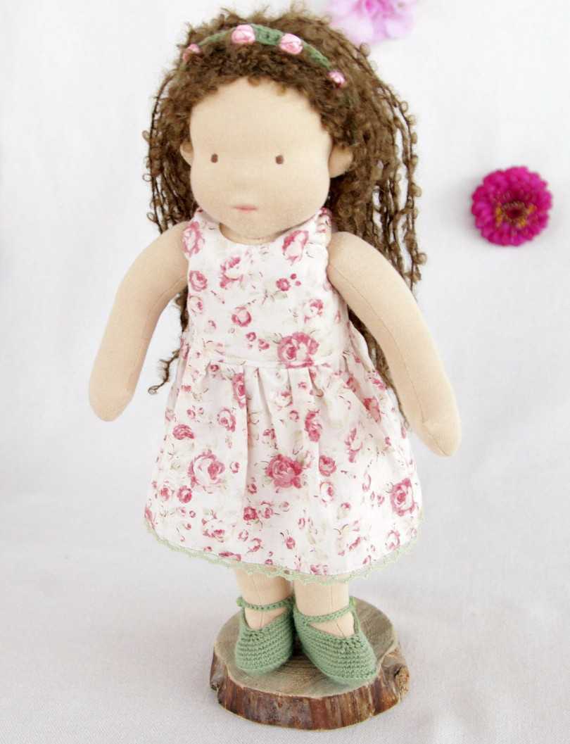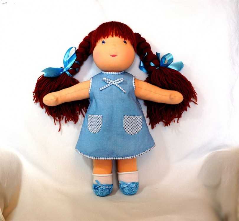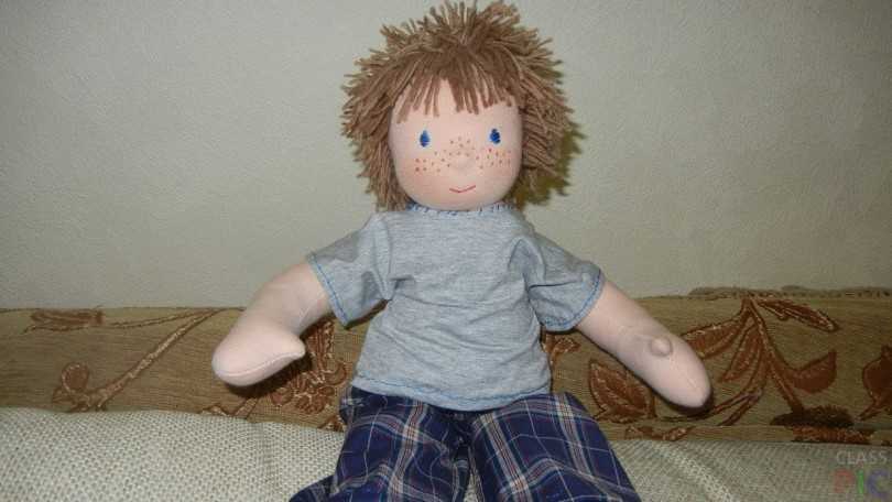Как только ребенок начинает осознавать себя, воспринимать окружающую действительность и распознавать ролевые модели, ему можно предложить взять в игру куклу, которая будет больше похожа на маленького человека. При пошиве игрушки следует помнить основные правила создания вальдорфских игрушек. Материалы как для тела куклы, так и для одежды должны быть только натурального происхождения. Пропорции тела соответствовать пропорциям тела ребенка: при высоте куклы в 36−40 см, голова должна соответствовать ¼ от роста — 9−10 см. Процесс создания вальдорфской куклы и МК выглядит более трудоемким, чем у предыдущих вариантов игрушек.