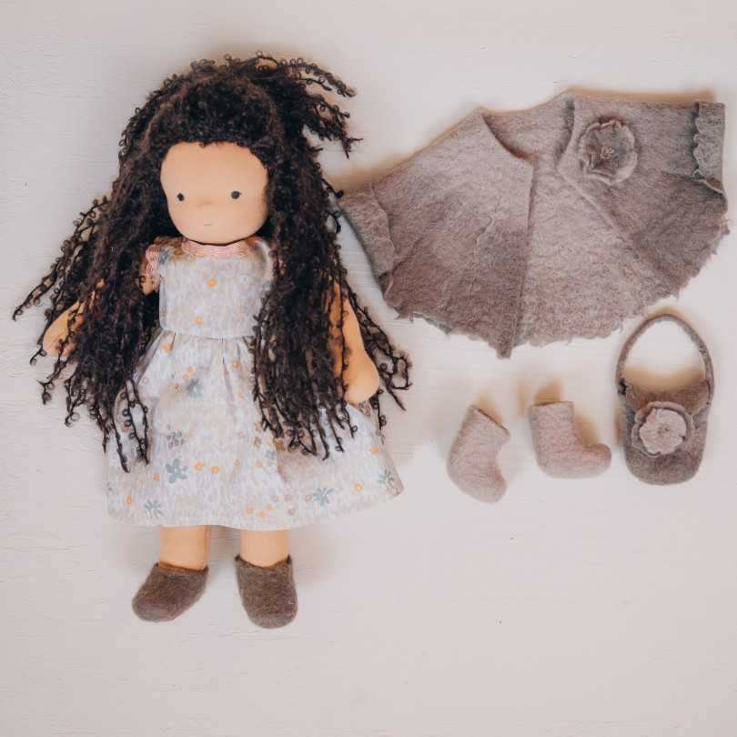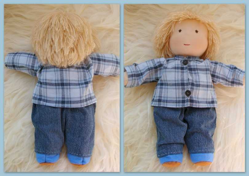 Одежда для вальдорфских кукол предполагает натуральные ткани или вязаные изделия. Модели шьют с таким расчетом, чтобы они снимались. Гардероб предполагает наличие вещей в разном стиле, чтобы ребенок сам переодевал подопечного по своему вкусу.