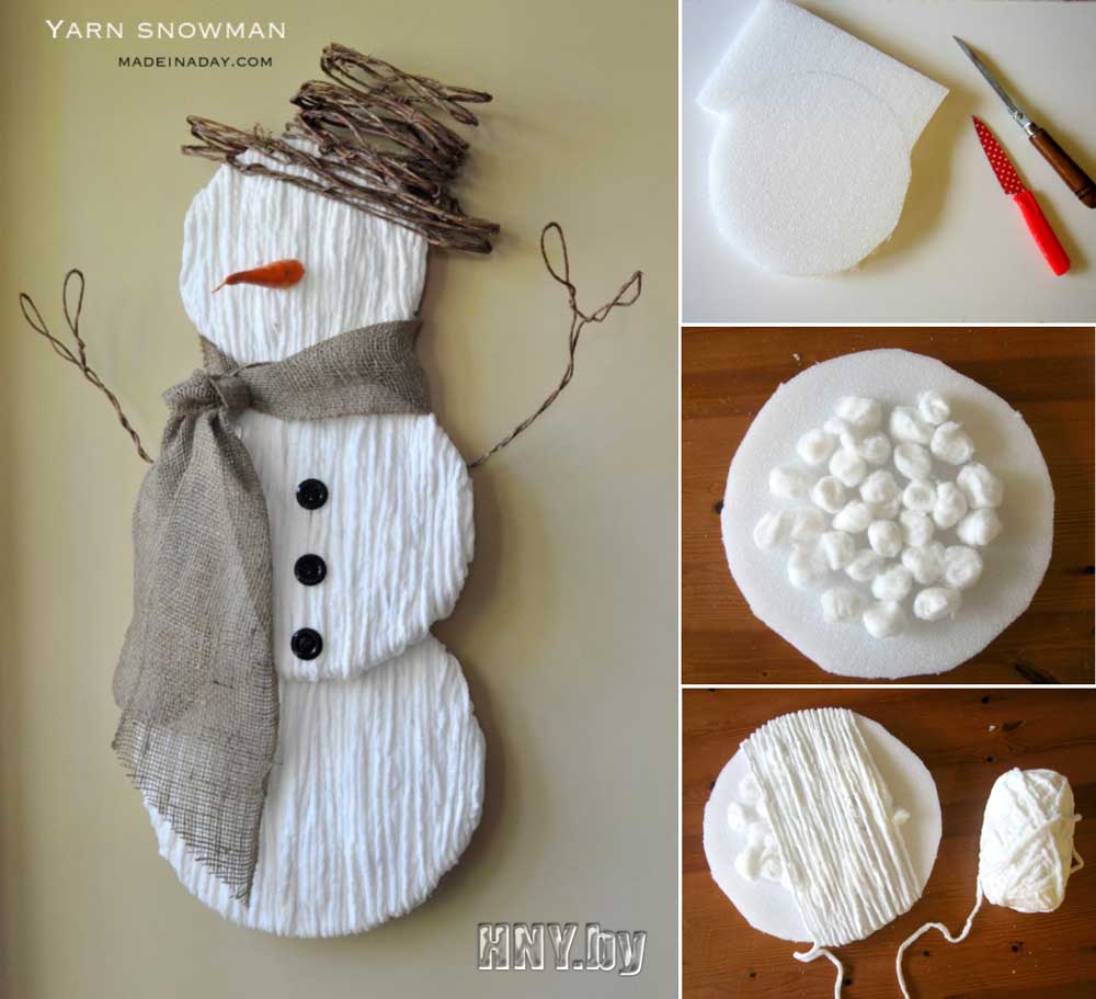 В качестве подручного материала для изготовления новогодней поделки снеговик можно использовать старые перегоревшие лампочки. Немного клея, блесток и старая не нужная лампочка превращается в оригинального снеговика!