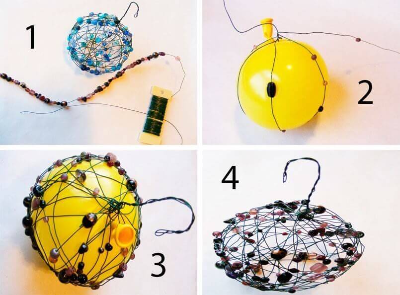 Для работы приготовьте: надувной резиновый шар, разноцветные перлы, проволоку, бусинки.