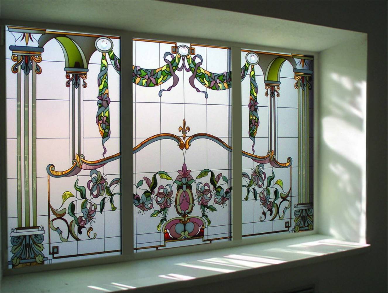 Пленочные витражи помогают сэкономить на декорировании интерьера, сохраняя при этом интересный внешний вид стекол.