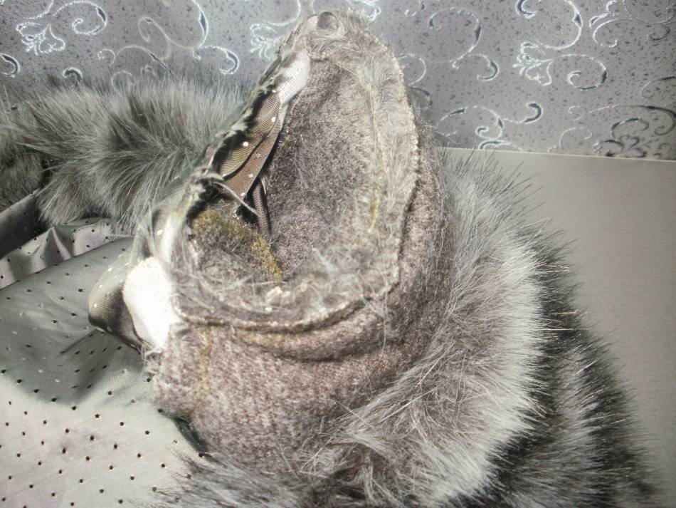 Третью шкуру пришиваем на плечи, пускаем меховую полосу на воротничок.