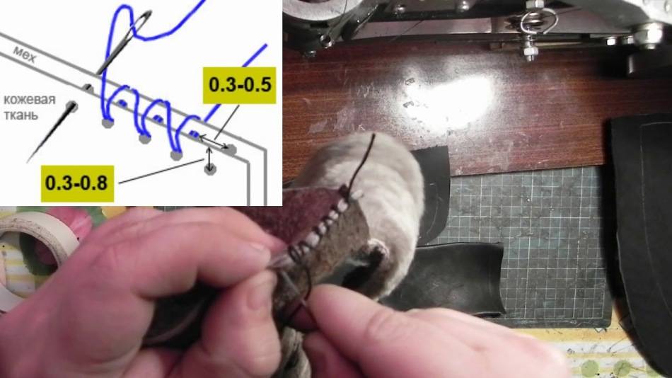 - Выкраиваем мех и сшиваем скорняжным швом. Это можно делать как на машинке, так и руками. Кстати, если мех тонкий – его можно шить на обычной бытовой машинке. Следите, чтобы в процессе шитья не стягивался шов;