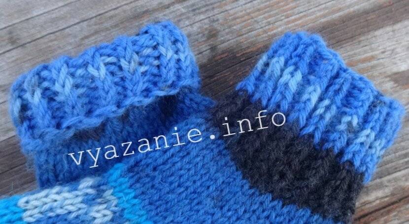 Для голенища вяжется лицевая гладь (10 или 15 см). Можно воспользоваться рабочим узором или обычной резинкой;