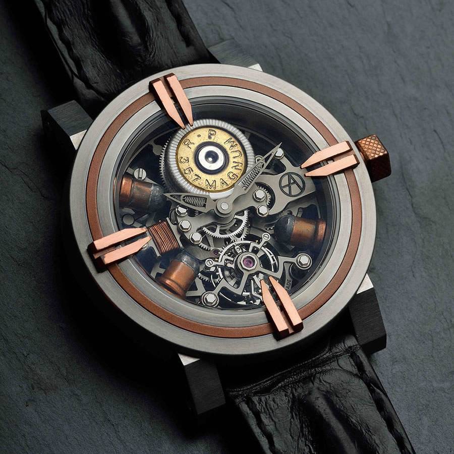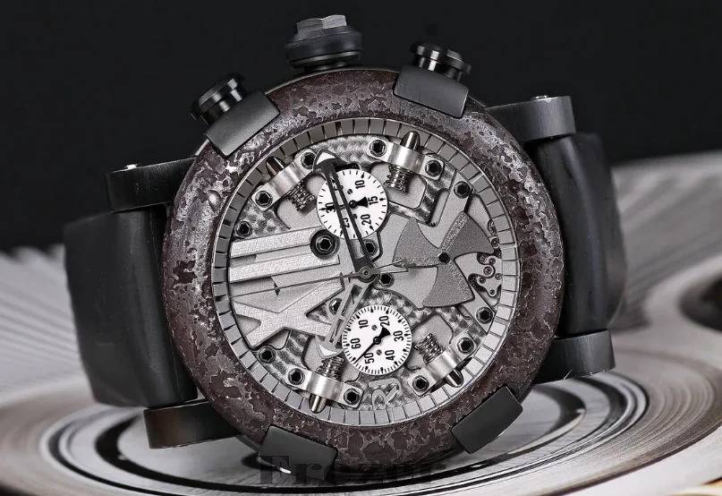 А ремешки лимитированной серии RJ Cabestan вырезаны из кожи уцелевших на морском дне диванов, части роскошной обстановки судна. У часов нет привычного циферблата, заводной механизм похож на мини-лебедку с цепью, намотанной на валы.
