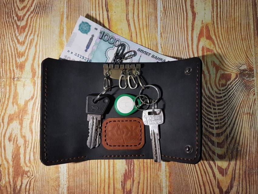 - плотная ткань или натуральная кожа используются для пошива ключниц с ярким дизайном, их часто используют для хранения ключей в сумке.