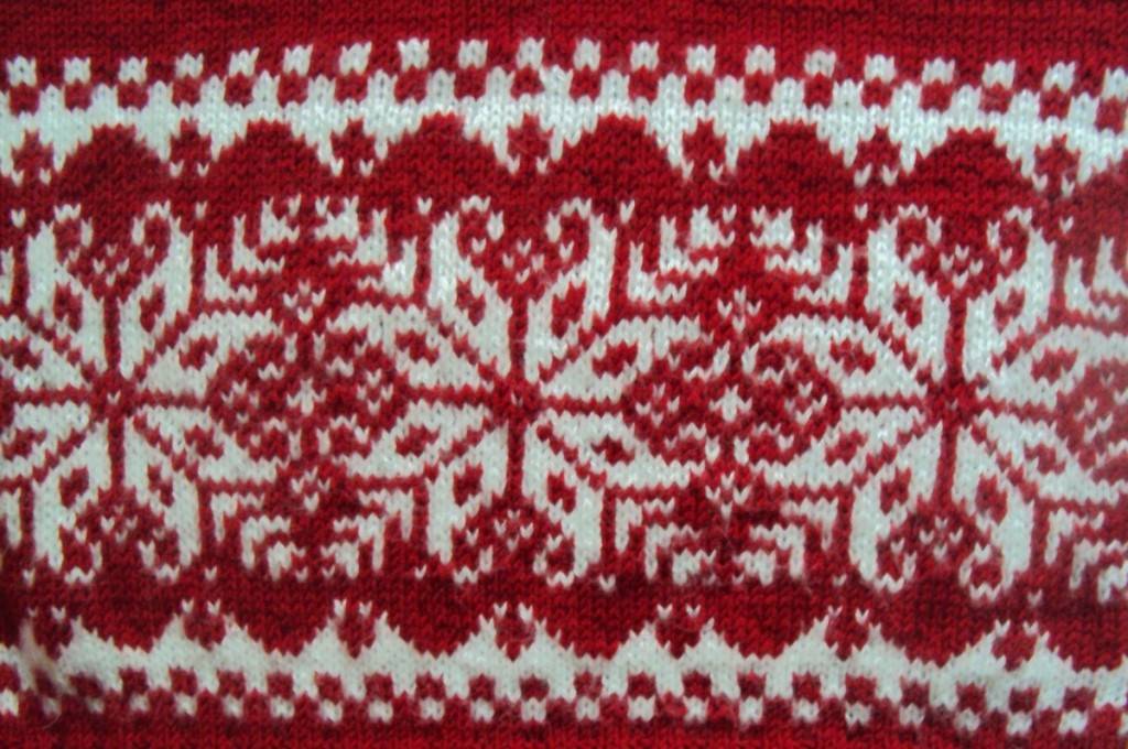 - Это как правило двухцветные узоры, которые вяжутся из пряжи контрастных расцветок. Наиболее популярны сочетания красного, черного, серого, синего и белого цветов.
