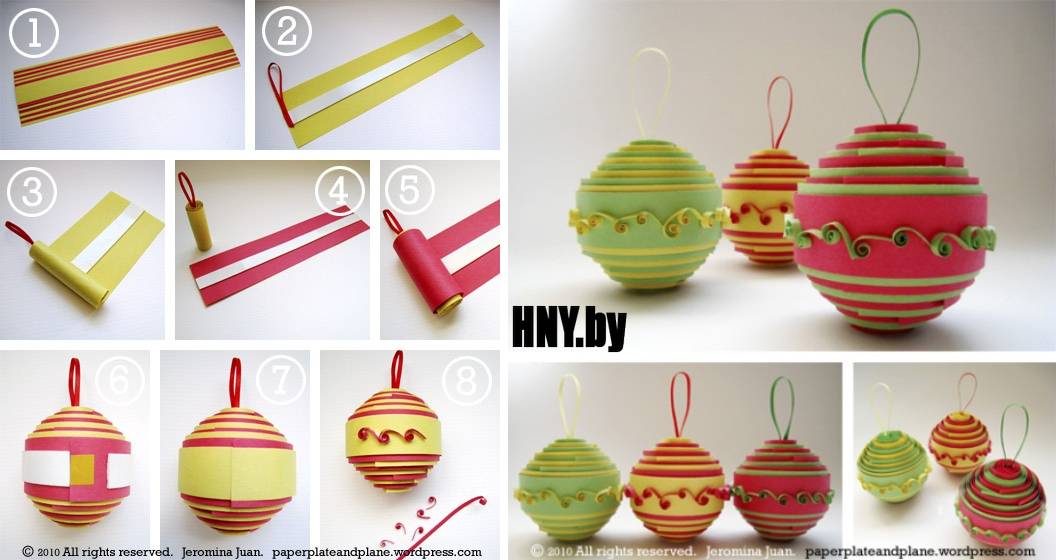 Шары всегда считались универсальными елочными украшениями. Их можно сделать из картона или цветной бумаги. В итоге они получаются не менее эффектными, нежели покупные. Вот несколько вариантов по изготовлению шариков.