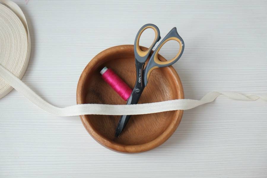 8. Теперь берем ножницы, кладем их горизонтально и отстригаем лишнюю ткань.
