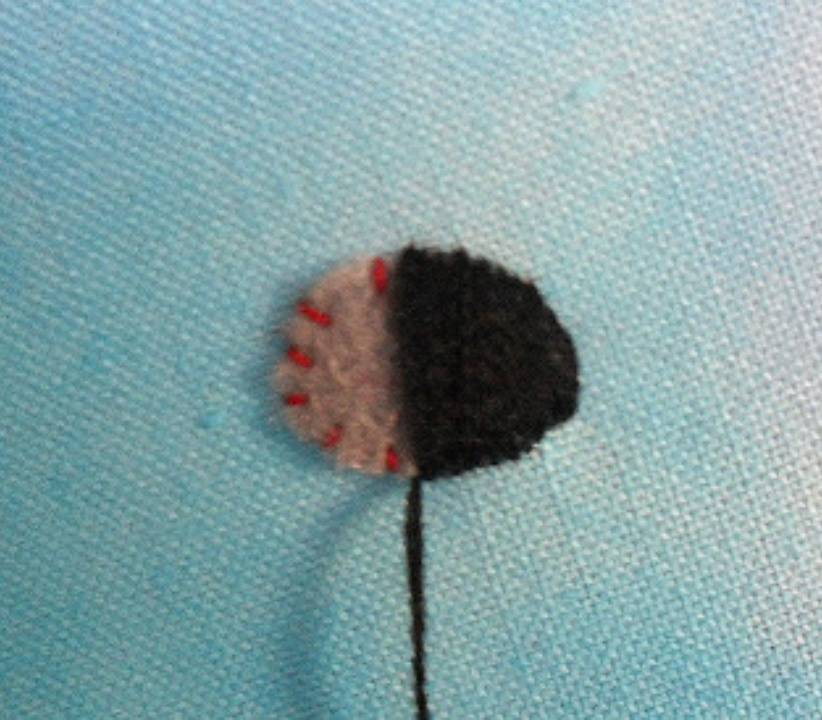 После того, как красные стежки будут нанесены, насекомое должно выглядеть так: