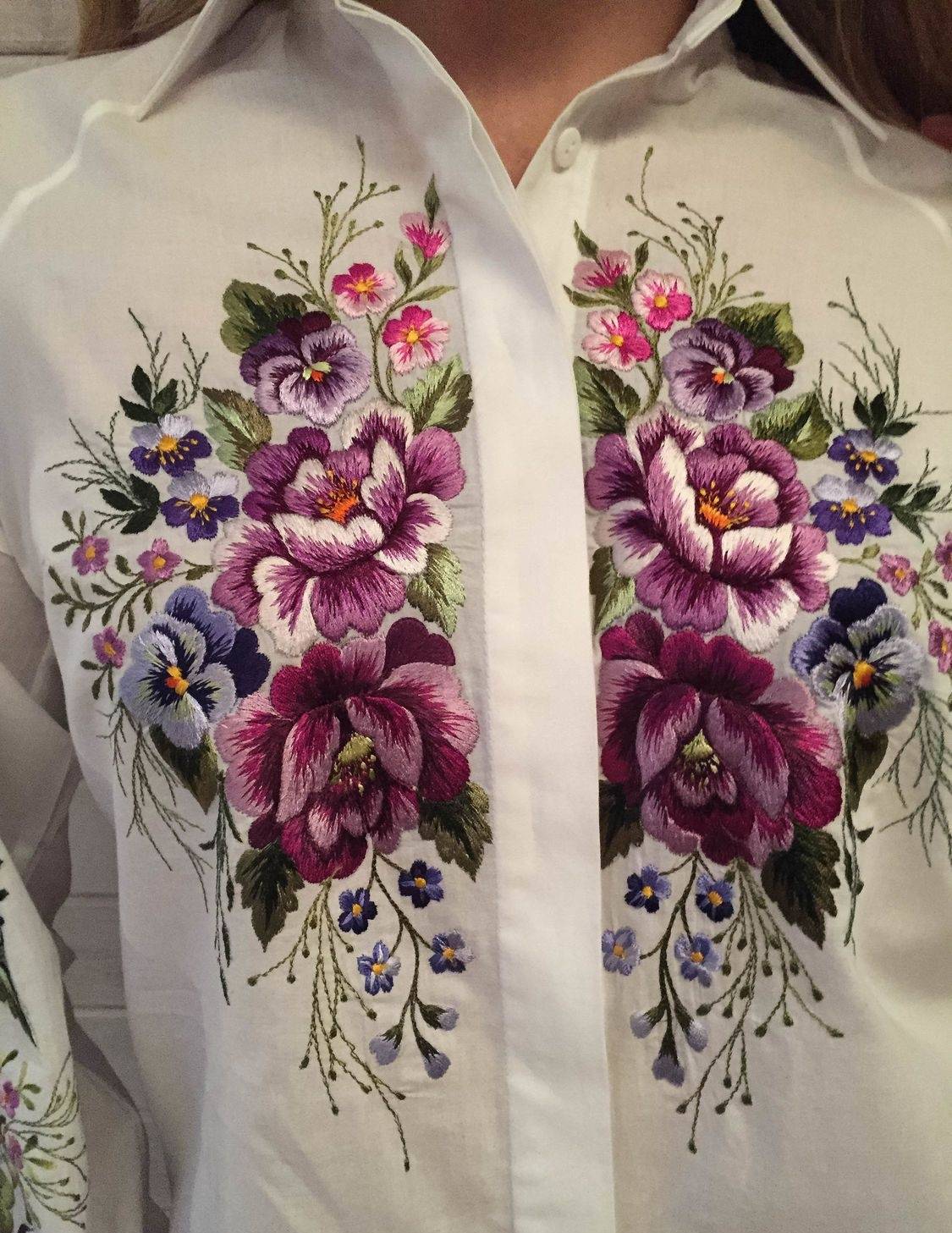 Белая вышивка гладью с жемчужинами станет отличным украшением на белой блузе, либо дополнит летнюю «воздушную» юбку.