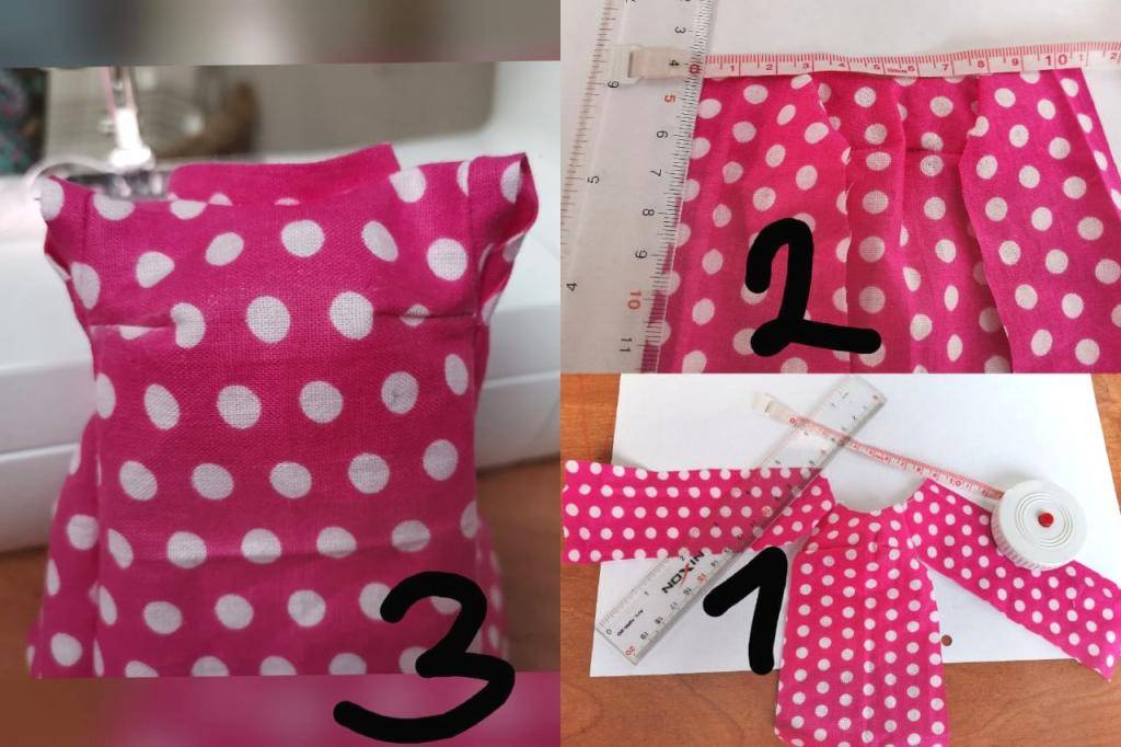 Платье с длинными рукавами для куклы: шаги 1-2.
