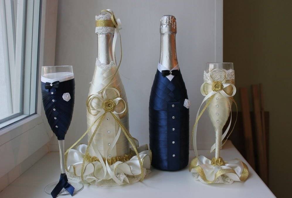 Великолепное украшение свадебных бутылок шампанского своими руками: фото невероятных идей