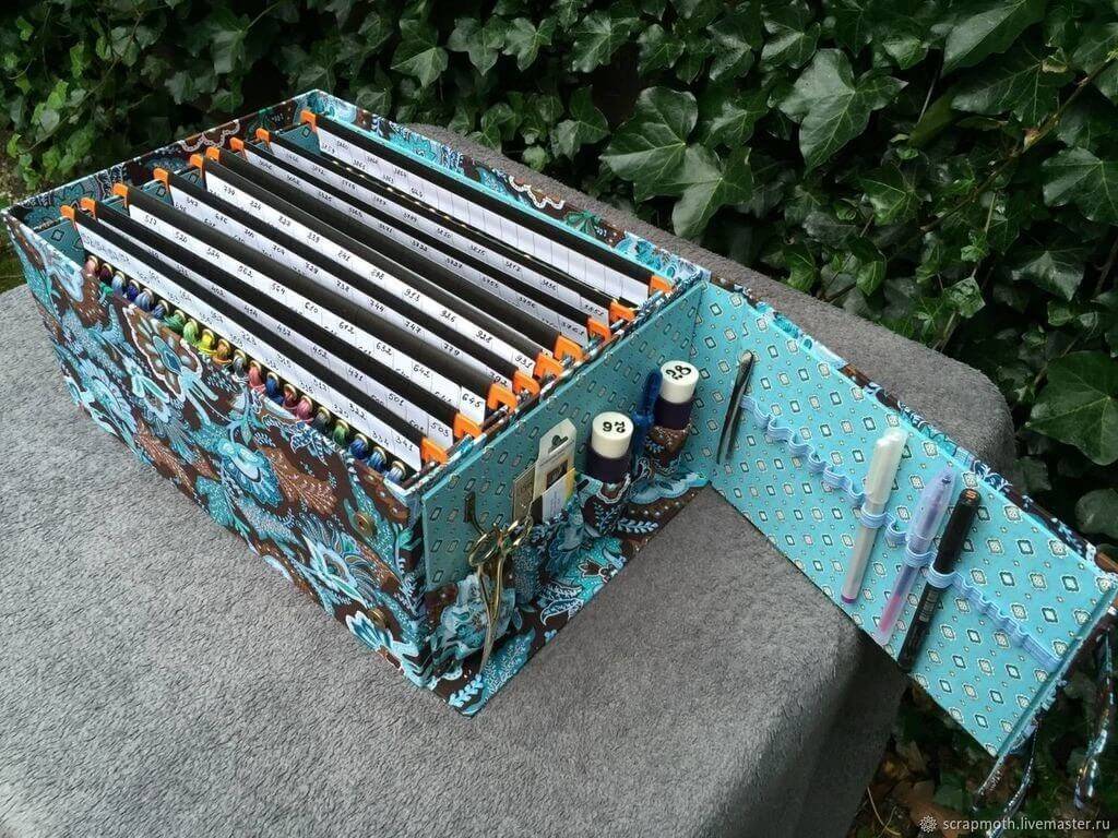 После того, как вы определились с объектом для наматывания ниток, необходимо подобрать подходящий органайзер. Для этих целей подойдет как обыкновенная коробка, так и шкатулка. Все упорядоченные нитки можно сложить внутрь, систематизировав их в специальные разделители. Которые можно сделать своими руками.