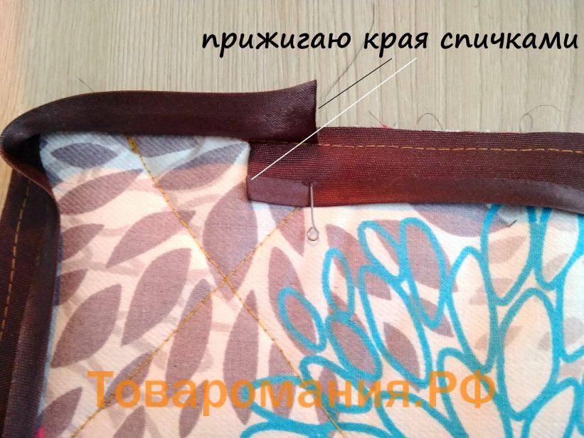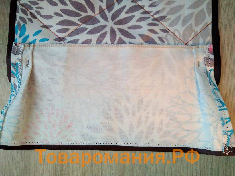 Для удобства сшивания лучше проутюжить среднюю деталь, загнув верхний и нижний край внутрь к изнанке.
