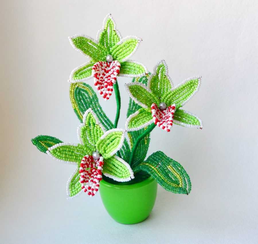 Итак, давайте приступим к непосредственной работе, чтобы красивая орхидея из бисера поскорей украсила наш интерьер.