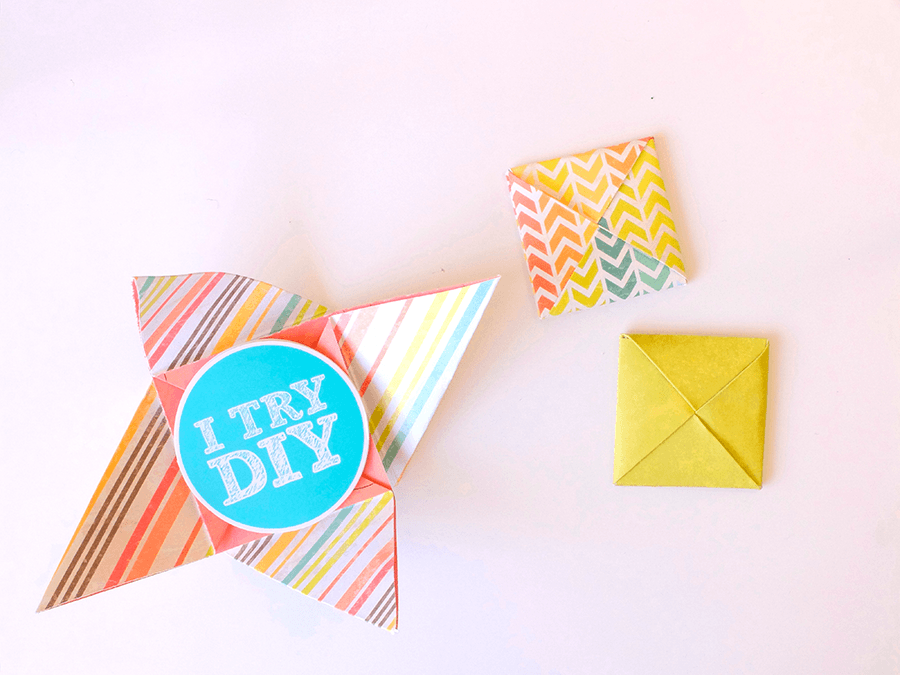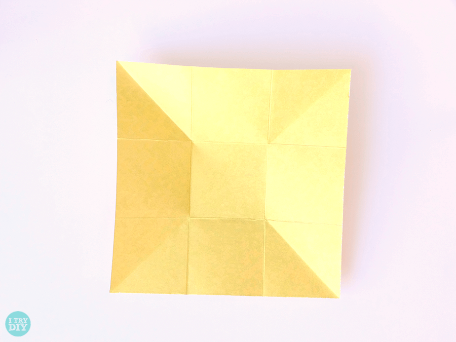 - Сложите листок по диагоналям — их пересечение задаст центр заготовки;