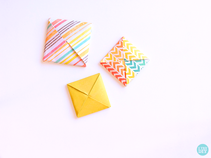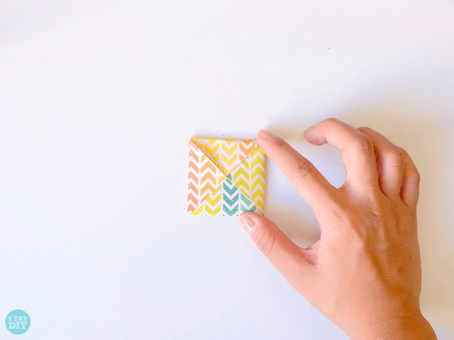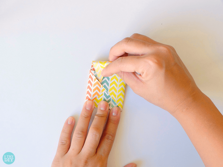 - Нижняя «острая» сторона загибается внутрь последней (она закрывает ваш любовный конверт);