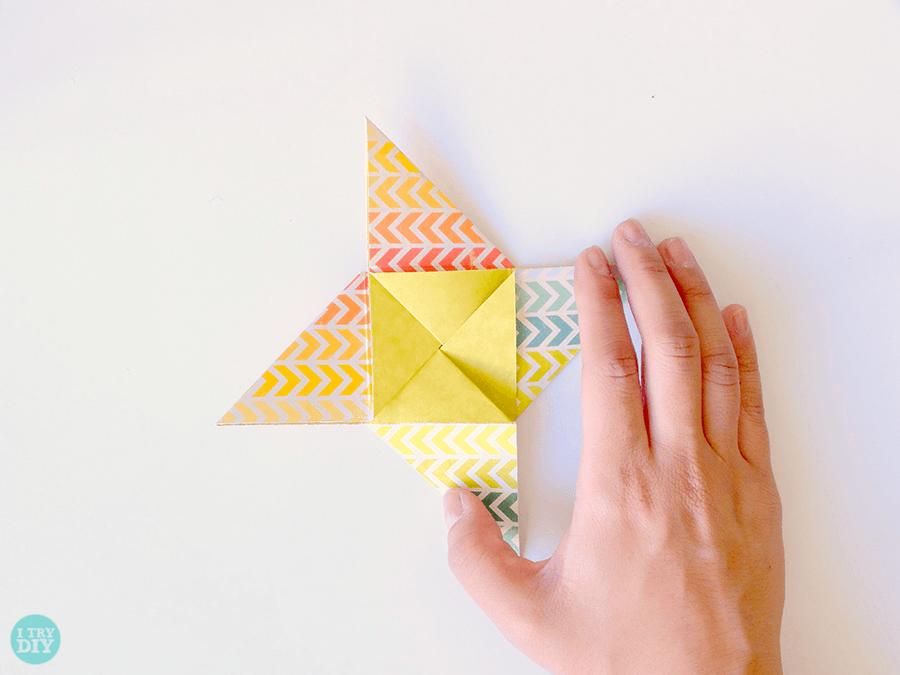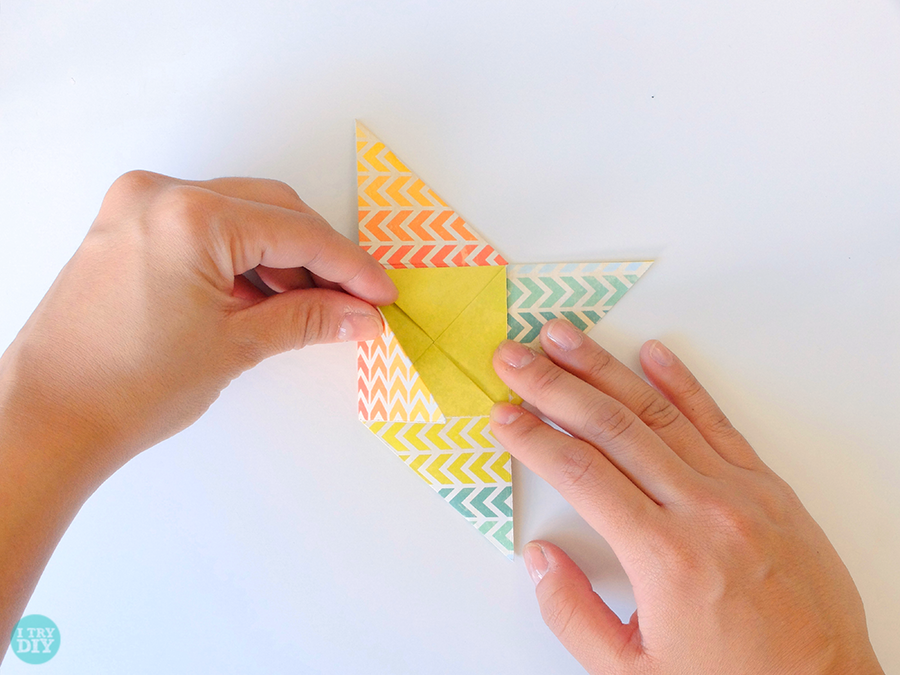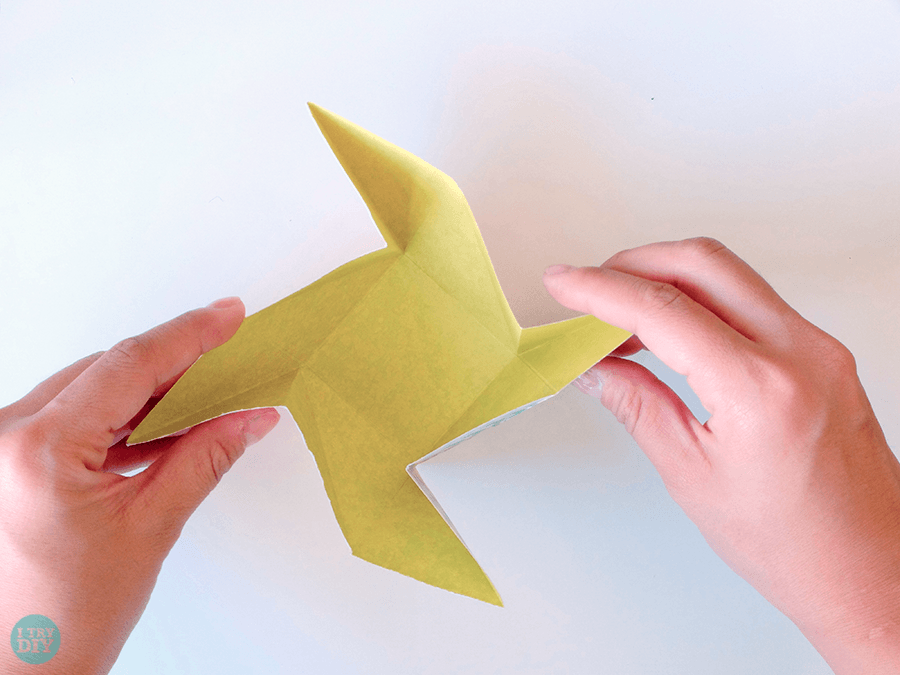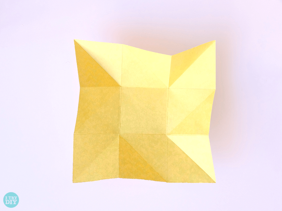 2. Согните углы у получившегося квадрата. Все они должны быть соединены посередине.