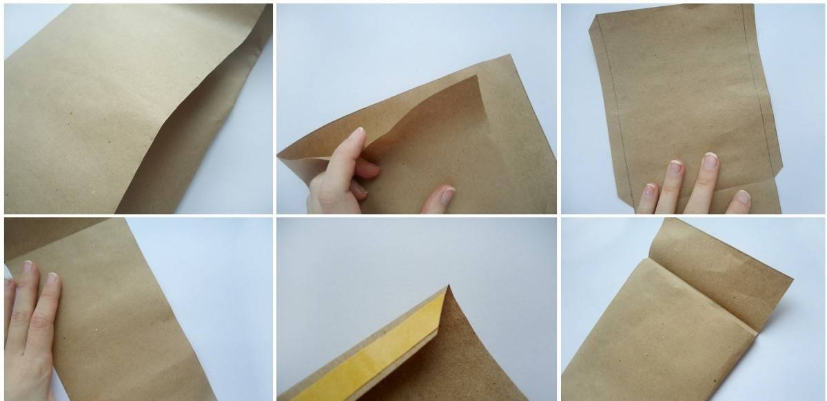 - Загните верхнюю часть конверта книзу, заправляя запечатывающий нахлест в получившийся кармашек, плотно прожмите места сгибов.