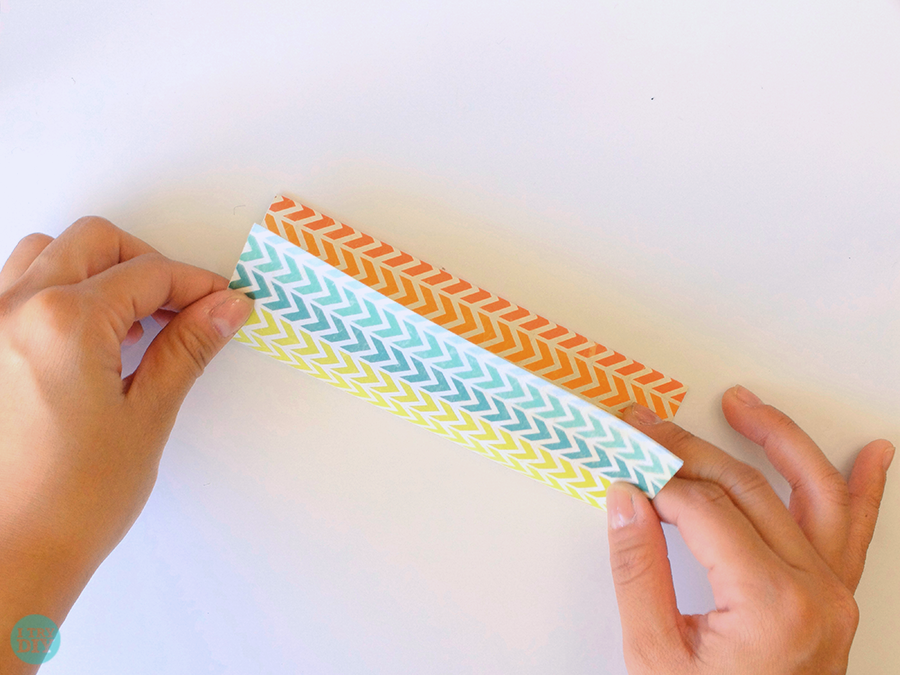 Если перевернуть конвертик в согнутом состоянии, то мы увидим прямоугольник. Отгибаем по направлению к себе обе стороны полоски вдоль широкой стороны — если изделие находится лицом вверх, то нам видно прямоугольник с одним разрезом вдоль, по которому мы его и сложим, а разрез раскроем.