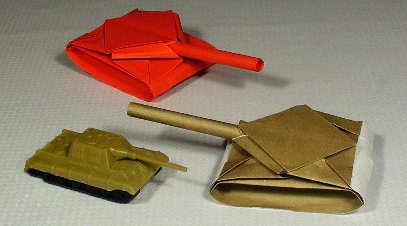 Танки, сделанные своими руками, как и реальные машины, очень разнообразны. Они различны по форме и способу создания, самые простые склеиваются по шаблону, более сложные используют технику оригами.