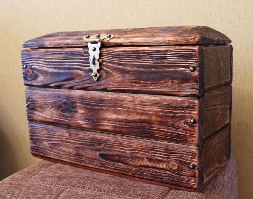 Декор деревянного сундука под старину в пиратском стиле
