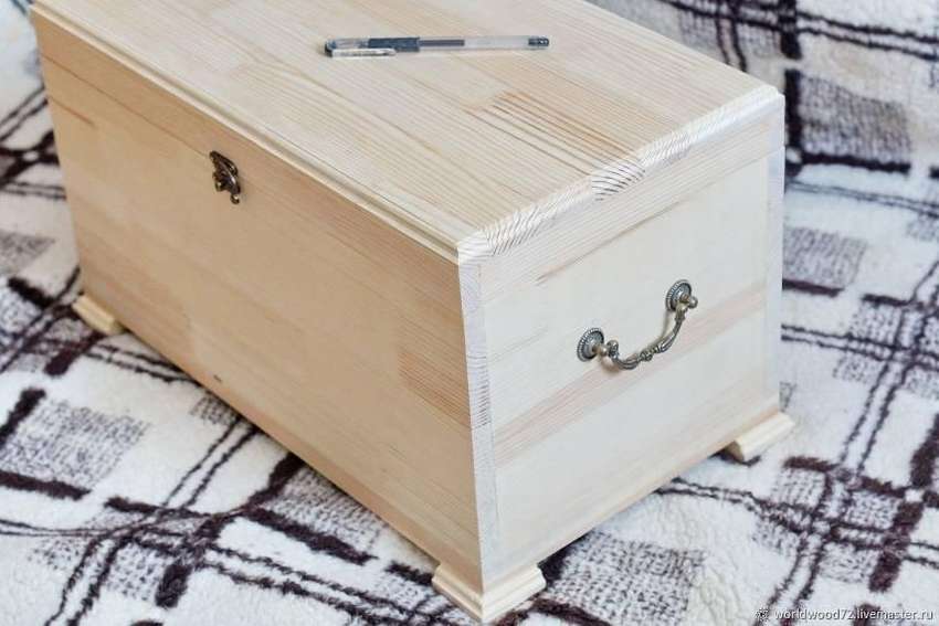 Без узоров, без резных элементов самый простой и незамысловатый сундучок для вещей, а самое главное практичный.