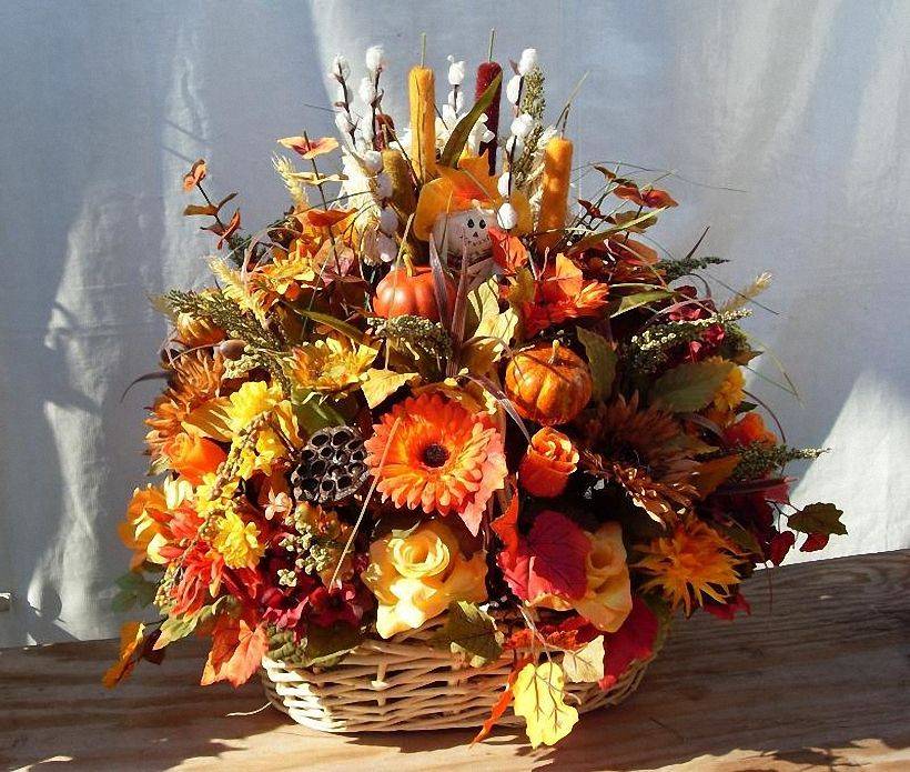 Цветочная композиция — это букет, собранный определённым образом. Помимо срезанных цветов, в композицию можно включать ленты, бусины, шары и другие украшения. При оформлении такого букета следует учитывать, где в обстановке он будет стоять и в каком сосуде. Чтобы цветы долгое время не увядали целесообразно использовать специальную флористическую губку тёмного цвета. Осенние композиции можно составлять из цветов, пожелтевших листьев, сухоцвета, злаков и различных плодов. Предлагаем вам подробный фото мастер-класс.