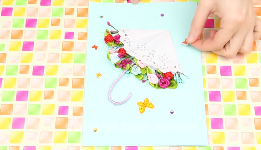 Вот и сейчас хочу Вам показать очень красивую открытку с зонтикам, она может быть подарком для любого праздника. Главное подписать