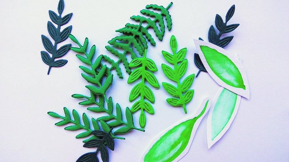 Подготовьте любую зелень для наполнения композиции — нарисованную самостоятельно, в виде вырубки или высечки из картона, фоамирана и так далее.