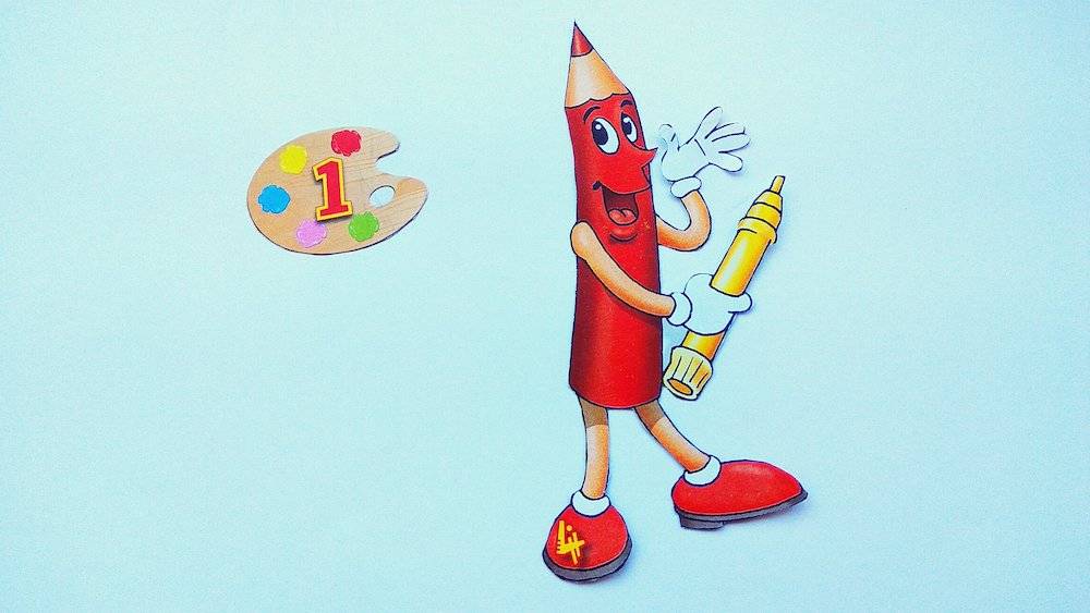 Выберите тематические картинки, например, из старых журналов в виде карандашей, красок или других канцелярских принадлежностей, они могут быть и шуточные.