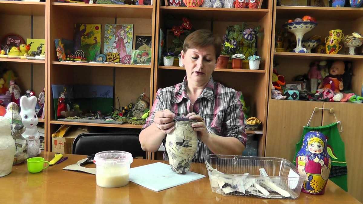 Папье-маше (мастер-класс для начинающих советует начинать с выбора способа: маширование или лепка) применяется для изготовления вазы. Если ваза внутри будет полая, то нужно выбрать маширование. При необходимости сделать вазу без пространства внутри нее, обращаются к технике лепки.